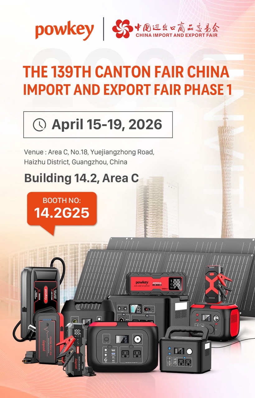 At powkey, we specialize in innovative portable power solutions, including high-capacity portable power stations, reliable car jump starters, and efficient solar panels. This Canton Fair, we will showcase our latest product lineup—designed to deliver reliable power for outdoor adventures, emergency backup, and professional use.